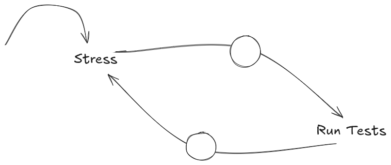 Let's also take all of this from another perspective, what if you don't have stress or have low stress. This is most likely the situation where you have started building some functionality. You may have a bit of Stress of timeline, but then again you can recall the previous experience from above. When you have less Stress, you are most likely to add more tests and test it. The more tests you add, the more confident you will become and it would reduce your Stress further.